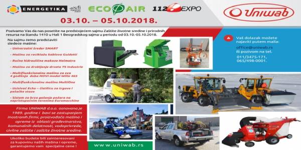 Na nedavno održanom EcoFair sajmu zaštite životne sredine i prirodnih resursa u Beogradu, firma Uniwab je predstavila premijerno nekoliko NOVIH mašina