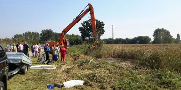 Puštanje u rad specijalne kašike sa hidrauličnom kosilicom za košenje trske na kanalima i duž obala na ribnjaku Jazovo.