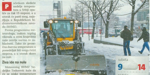 Tokom prethodnog snežnog perioda naše mašine su bile uposlene u čišćenju snega sa beogradskih ulica.