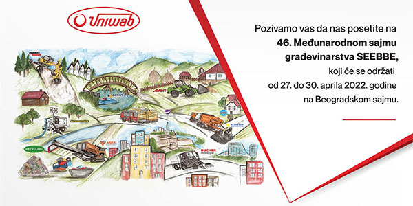 Od 27.aprila do 30.aprila, čekamo vas na sajmu Građevinarstva SEEBBE u Beogradu. Na sajmu ćemo predstaviti najsavremeniju građevinsku mehanizaciju, sa posebnim akcentom na inovativnoj mašini za reciklažu građevinskog i komunalnog otpada.